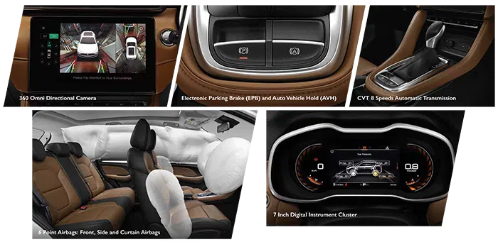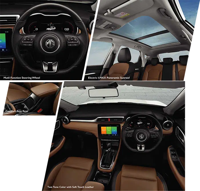 Setiap komponen NEW MG ZS menggabungkan desain dan eksekusi yang lebih detail. Setiap elemen sangat cocok dengan gaya yang sporty dan mewah: dari DUAL TONE kabin yang di desain dengan material SOFT TOUCH dan dilengkapi dengan 10 INCH INFOTAINMENT SYSTEM dan 7 INCH DIGITAL MULTI FUNCTION DISPLAY.