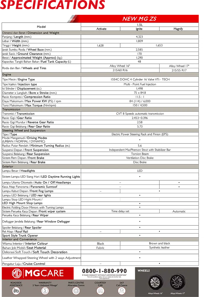 Respon dan kelincahan yang prima untuk membuat Anda nyaman di setiap perjalanan. Gaya dari NEW MG ZS akan membawa Anda dalam pengalaman berkendara yang dinamis. The real dynamic NEW MG ZS. Dan itu adalah janji disetiap perjalanan dan untuk setiap pengendara NEW MG ZS. No compromises. No regrets. No rational arguments.