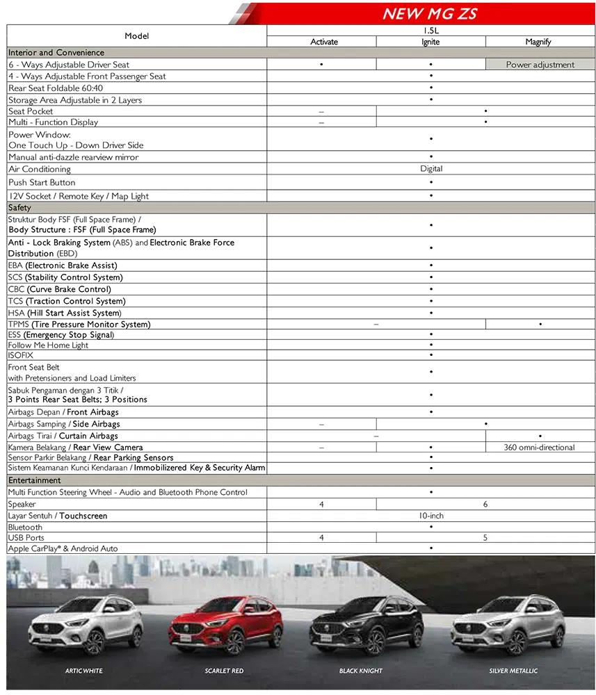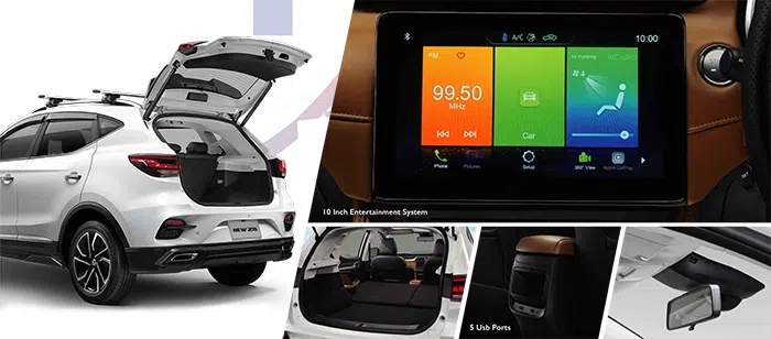 NEW MG ZS dilengkapi dengan sistem hiburan untuk menjawab setiap permintaan gaya hidup dengan lebih baik. Dirancang dengan ruang kabin yang lebih luas dan terdapat kursi belakang yang dapat dilipat untuk memenuhi setiap kebutuhan.